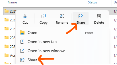 Use the "Share" menu from right clicking a file or folder to share access to files with someone.